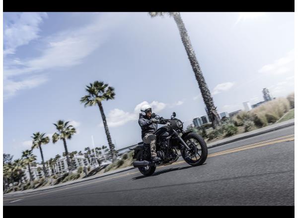 A long and low design with elegant proportions is created by the vertically thin fuel tank and the horizontal lines evident from the head pipe to the original tail. The design of the impressive, mid-class sized body suggests a balance of active performance and composure.